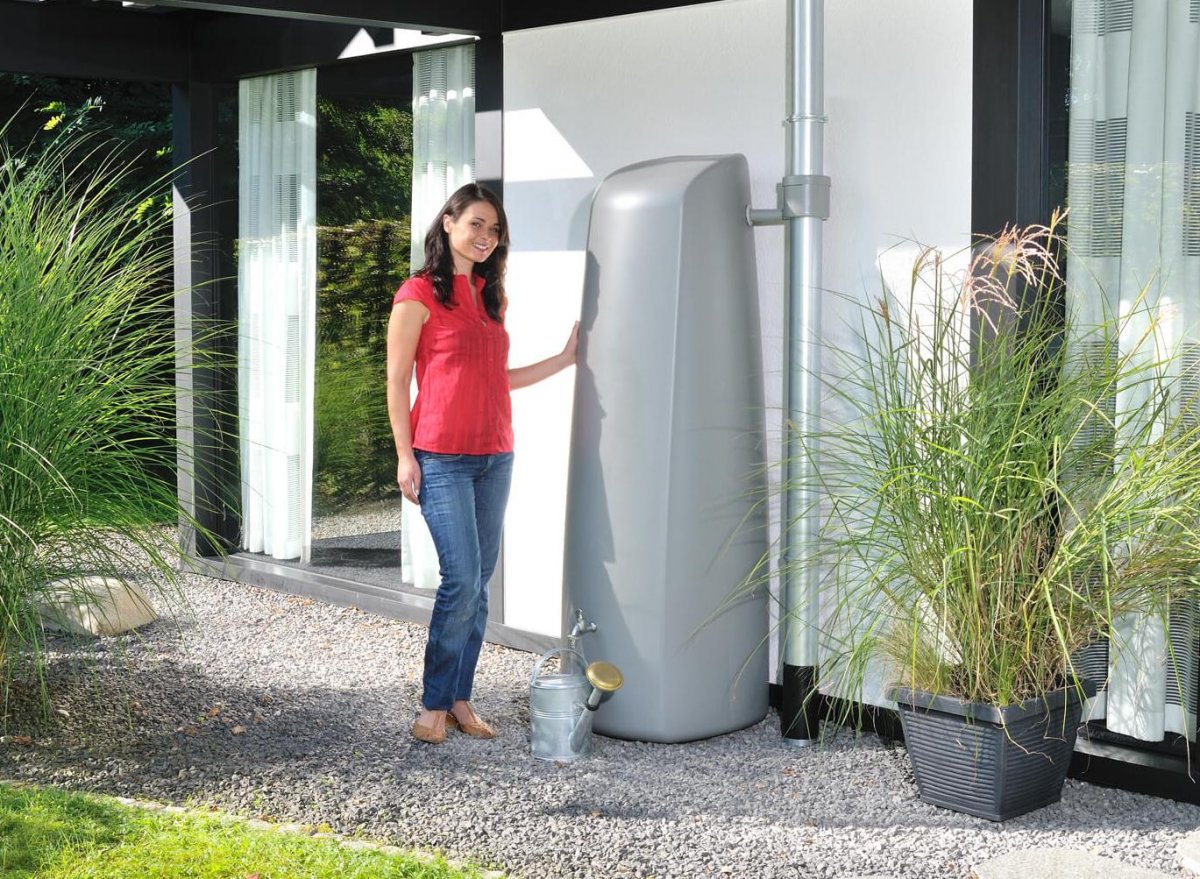 - Stilvoller und zeitloser Regenwassersammelbehälter für den Garten