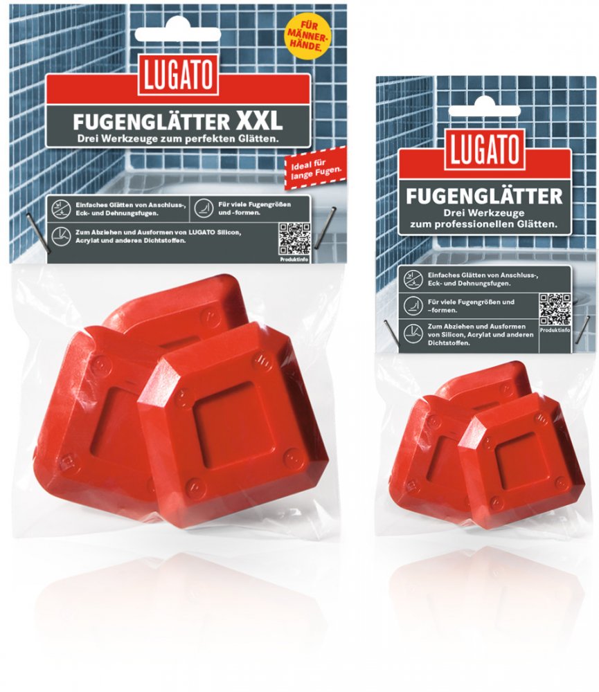 - In der Packung befinden sich drei Fugenglätter für viele Fugengrößen und -formen