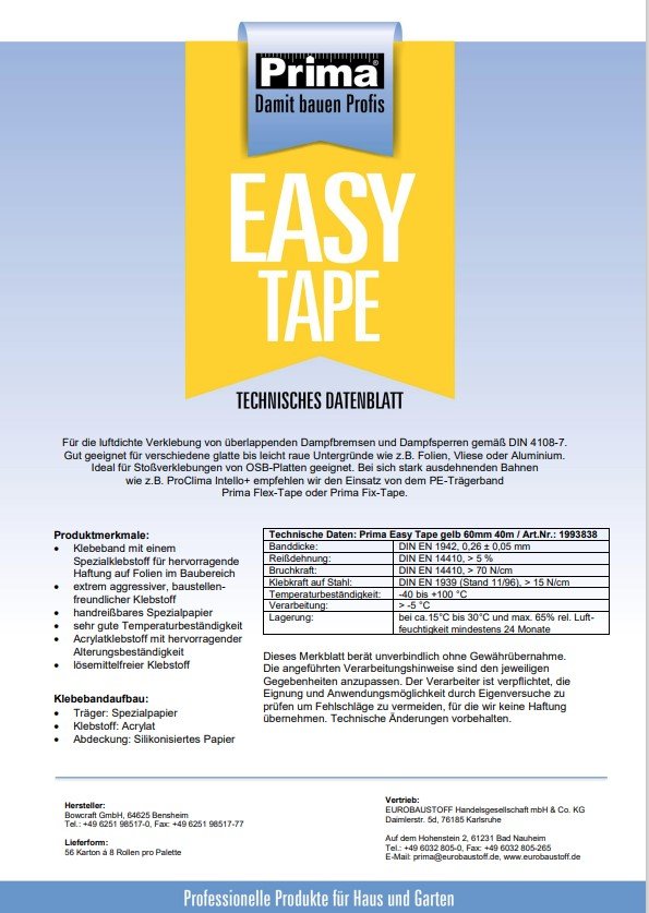 Luftdichte Verklebung von Folienüberlappungen Artikel-Nr.: 24530000 Hersteller: BOWCRAFT GmbH Grundpreis: € 0,74/ m