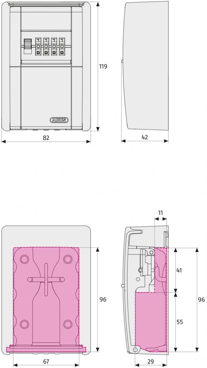 und Aufbewahrung von Schlüsseln und Plastikkarten mit individuell einstellbarem Zahlencode Artikel-Nr.: 83204700 Hersteller: Abus