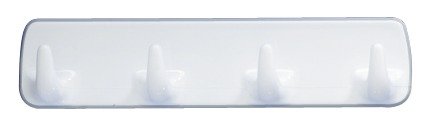 Hakenleiste aus Kunststoff mit 4 Haken. Schutzfolie abziehen und anbringen. Optimal für Bad, WC und den gesamten Haushalt.