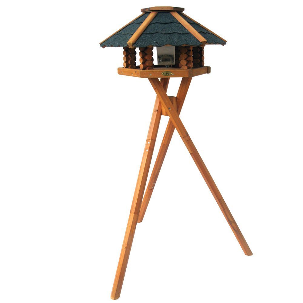 Das Vogelhaus ist im Blockhausstil gefertigt und mit Bitumenschindeln bedeckt. Durch die offene Konstruktion können die Vögel von allen Seiten ans Futter kommen. Das speziell entworfene Silo mit Fassungsvermögen von ca. 450 ml lässt sich einfach herausnehmen und befüllen.