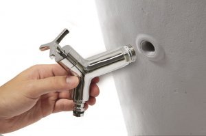 - Dieser stylische Chrom-Auslaufhahn passt ideal zu modernen Regenwasserbehältern der Modern line