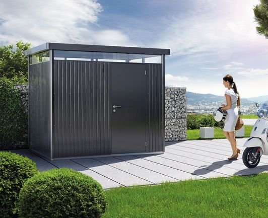 Abbildung zeigt Gerätehaus HighLine H2 in dunkelgrau-metallic.