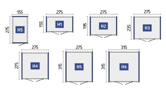 - Maße: erhältlich in 7 Größen (HS, H1, H2, H3, H4, H5 und H6)