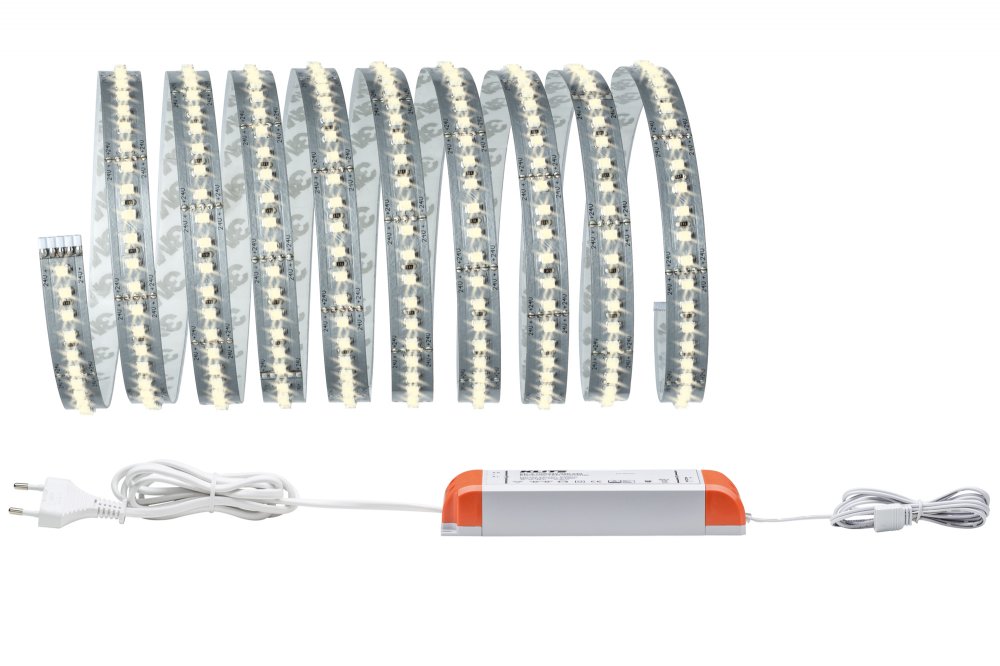 MaxLED-Strips sind so leistungsstark, dass sie problemlos zur Raumausleuchtung eingesetzt werden können. Besonders in Profilen sind sie echte Highlights. Warmweiße Strips sorgen für gemütliches und entspannendes Raum- und Nutzlicht. Das Basisset enthält neben dem Streifen ein passendes Vorschaltgerät. Es lässt sich nach Bedarf mit zusätzlichen Strips, Verbindern und Steuerungseinheiten mit Fernbedienung erweitern. Bitte beachten Sie bei der Planung die unten angegebene Maximallänge, die nicht überschritten werden darf.