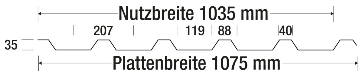 - Breite: 1075 mm, Nutzbreite: 1035 mm