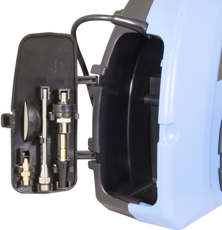 Das kompakte Kompressor-Set ist mit seinem umfangreichen Zubehör für fast alle im familiären Alltag anfallenden Drucklufttätigkeiten geeignet und darf in keiner Garage fehlen. Mit dem Reifenfüller lassen sich sowohl KFZ- als auch Motorrad- und Fahrradreifen bequem prüfen und aufpumpen. Mit zahleichen Adaptern ist es möglich auch Schlauchboote, Luftmatrazen sonstige Schwimmhilfen und sogar Fußball aufzupumpen. Selbstverständlich sind auch Reinigungsarbeiten mit der Düsenverlängerung anstatt des Reifenfüllschlauches möglich. Das Güde Kompressor-Kompakt-Set ist einfach zu transportieren und jegliches Zubehör ist an seinem Platz ordentlich und zuverlässig verstaut. Der 3Meter lange Druckluftschlauch sorgt zusätzlich für einen großen Aktionsradius.