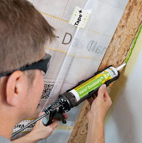 ISOVER Vario® DoubleFit + ist die neue universelle, dauer-elastische Klebe-Dichtmasse für innen und außen mit verbesserter Rezeptur. Die universelle und sichere 2-in-1-Lösung für die luftdichte Abdichtung von Dampfbremsfolien an angrenzenden Bauteilen. Unterschiedliche Untergründe und Folien stellen verschiedene Anforderungen an die Verklebung. Bislang waren die Dichtmassen Spezialisten, die ihre individuellen Stärken immer nur auf einem bestimmten Untergrund ausspielen konnten.