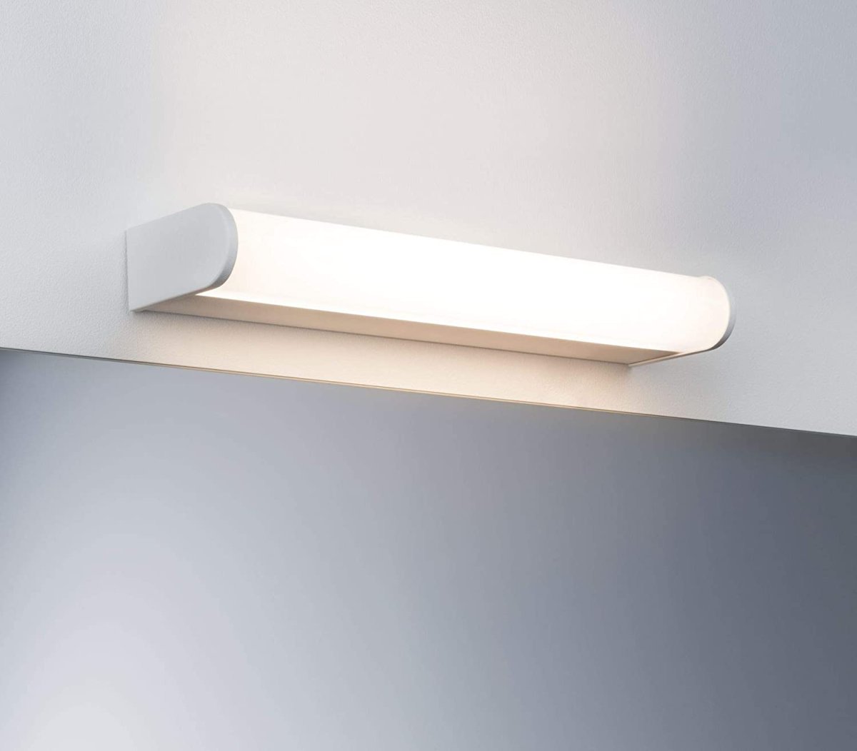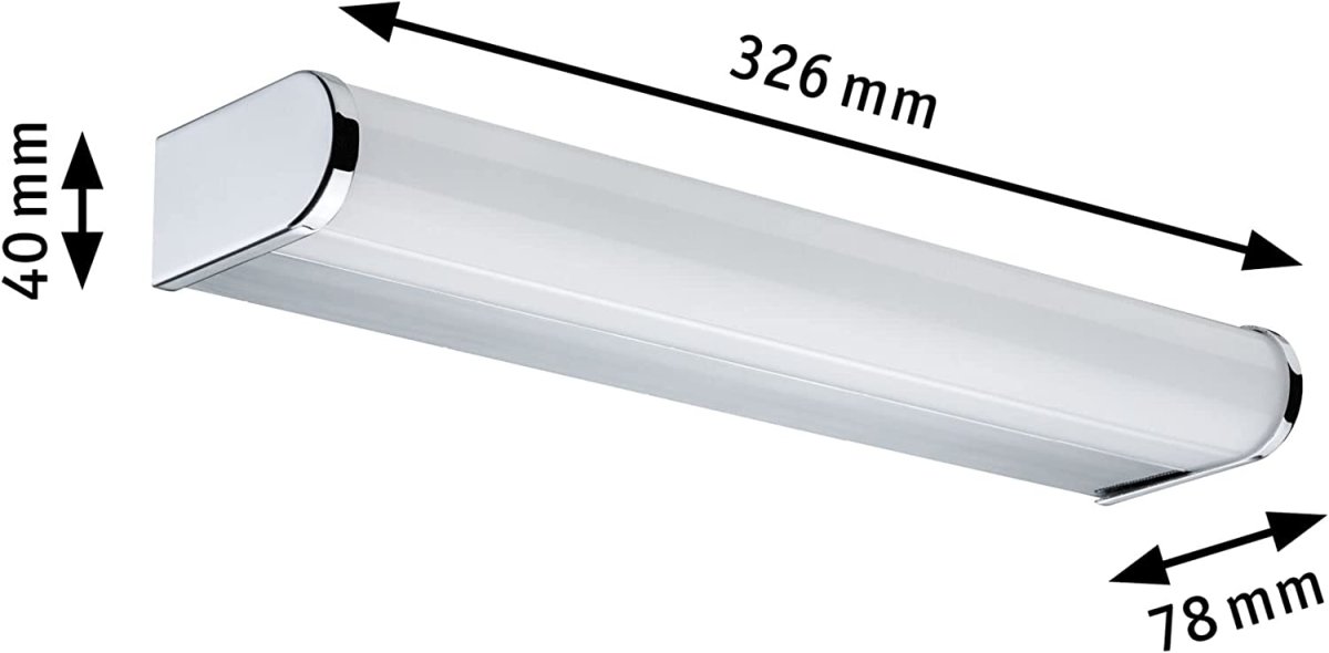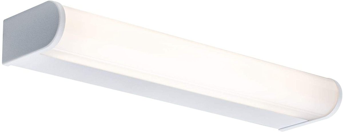 Die Arneb Wandleuchte kann durch den Spritzwasserschutz direkt über dem Spiegel montiert werden. Eine satinierte Acrylabdeckung sorgt für eine gleichmäßiges und blendarmes Licht im Bad.
