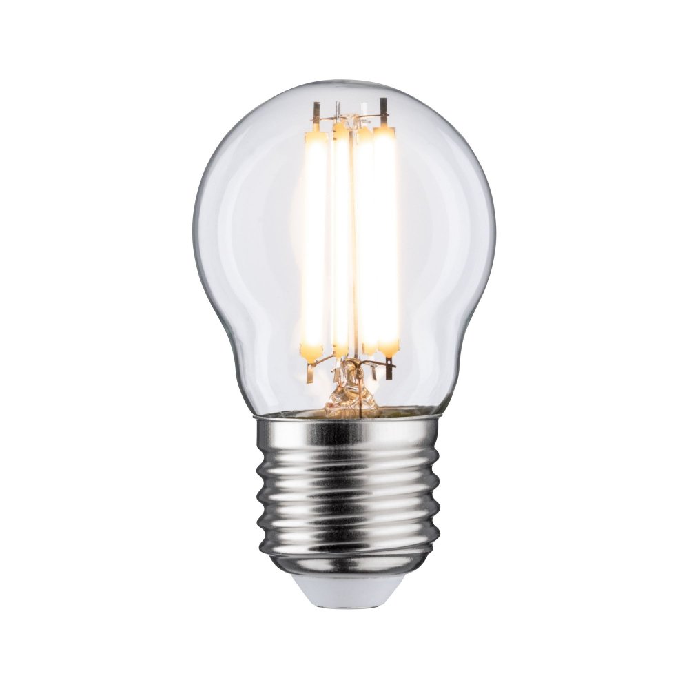 Die Filament-Tropfenlampe mit einer Leistung von 6,5 Watt gibt ihr warmweißes Licht in alle Richtungen ab. Tropfenlampen eignen sich durch ihre kompakte Bauform ideal für den Einsatz in kleinen Leuchten. Sie passt in jede handelsübliche E27-Fassung.