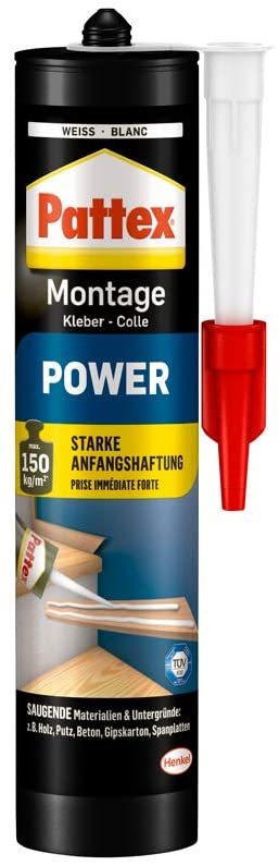 Pattex Montagekleber Power mit 150 kg/m² starker Anfangshaftung* für innen und außen**.