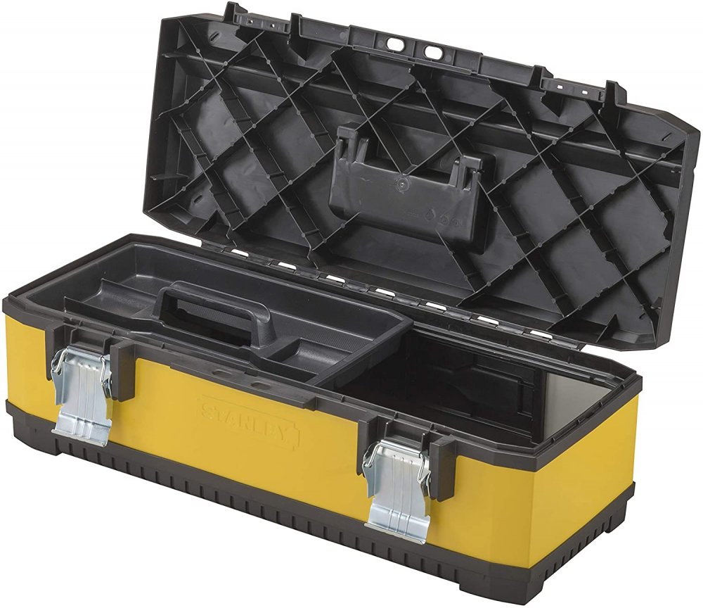 - Geräumige Werkzeugbox aus Metall-Kunststoff-Verbund für den sicheren Transport von Werkzeugen und Zubehör