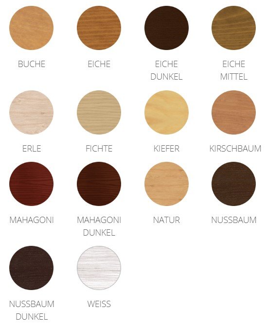 - Anwendungsbereiche: Wand- & Deckenpaneelen (Innen), Holzmöbel, Treppen, Arbeitsplatte, Innentüren, Holzrahmen