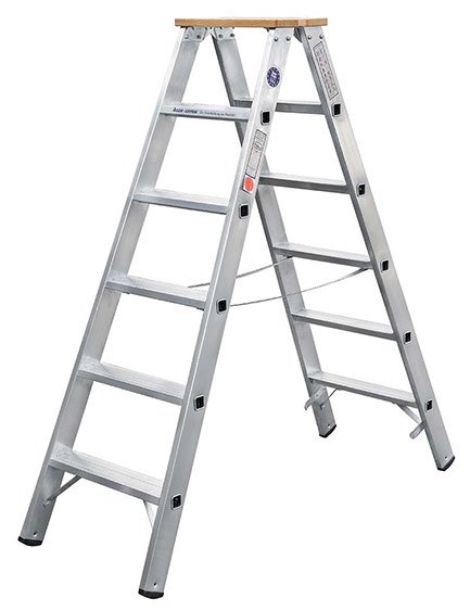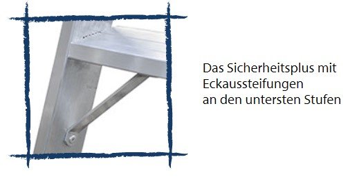 Shop » Detailansicht ILLER Leiter - Aluminium Stufen Stehleiter - beidseitig - 2x4 Stufen oder 2x5 Stufen