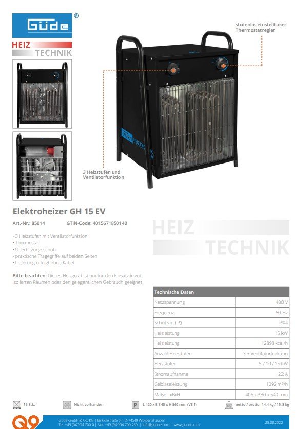 Shop » Detailansicht Elektroheizer GH 15 EV - 85014