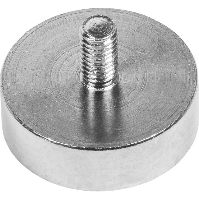 Topfmagnet mit Außengewinde M5, Magnetisierung N35, verchromt.