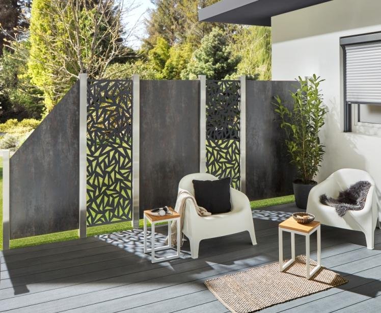 Designelement aus pulverbeschichtetem Metall passend zu allen Zaunserien.