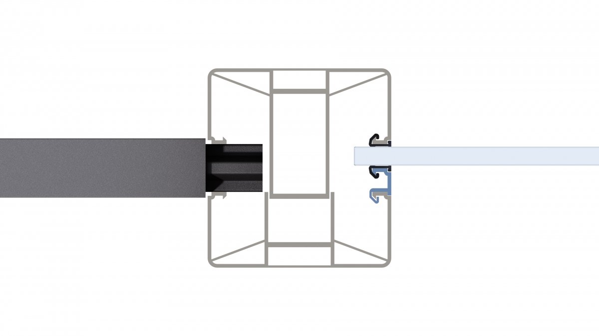 Die Pfosten sind vorgebohrt und beinhalten passende Pfostenkappen sowie ein Blindprofil um als Abschlusspfosten eingesetzt werden zu können. Je nach Elementstärke variiert die Tiefe des Pfostens zwischen 74 und 84 mm.