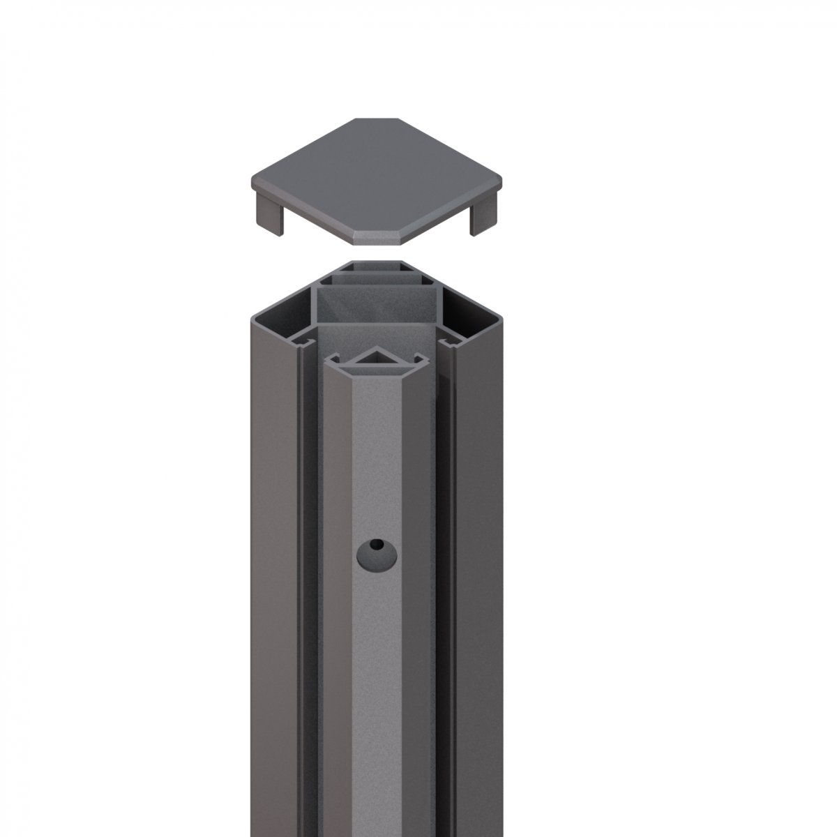Universalpfosten für die Montage von SYSTEM Zaunfeldern. Die Profile bzw. die Elemente werden im Pfosten eingeklemmt.