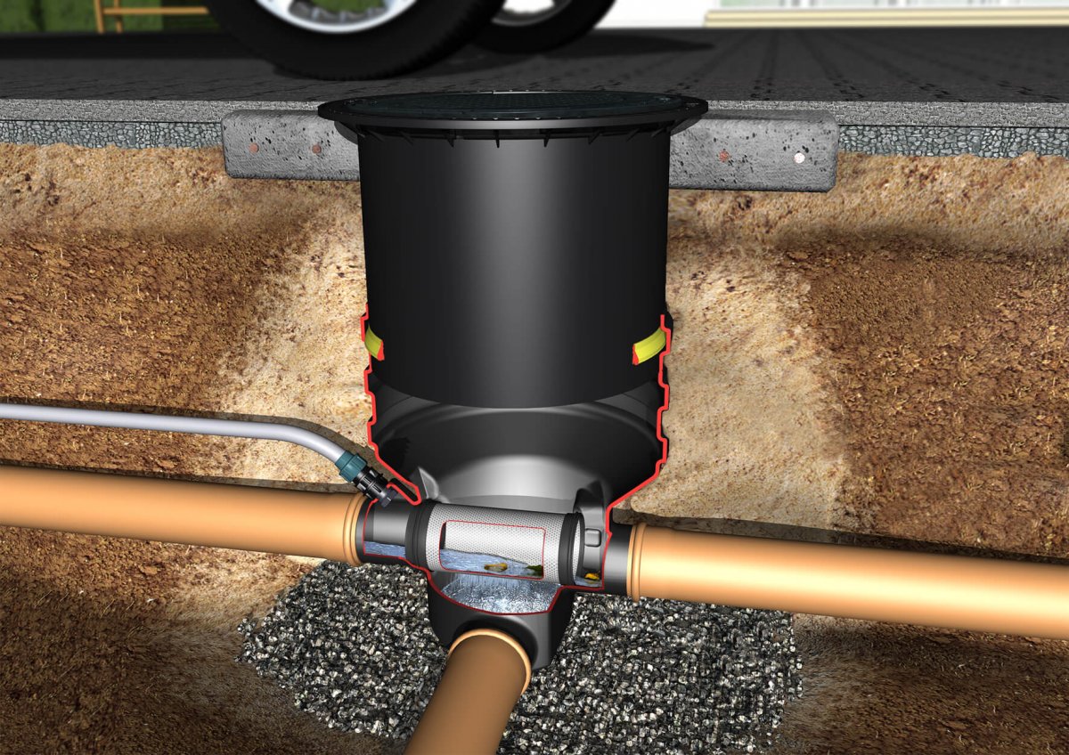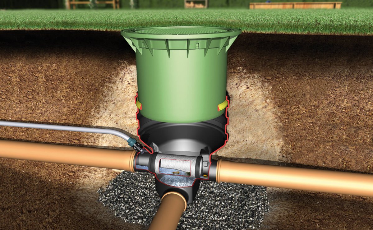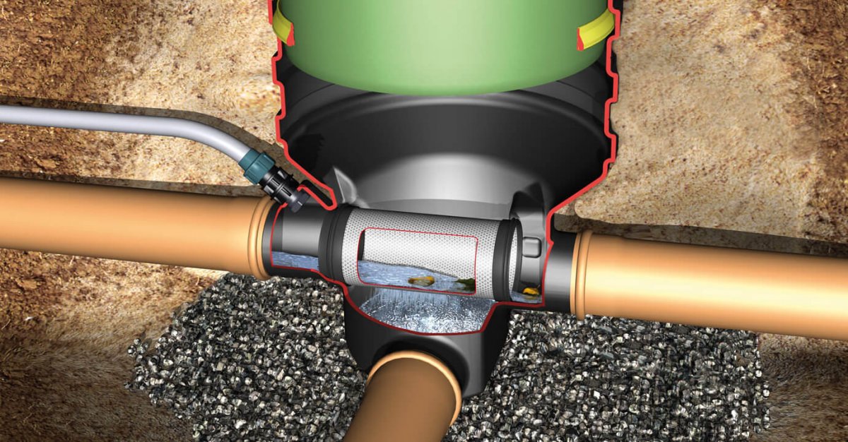 - Externer Filter zur Reinigung des Regenwassers vor dem Tank