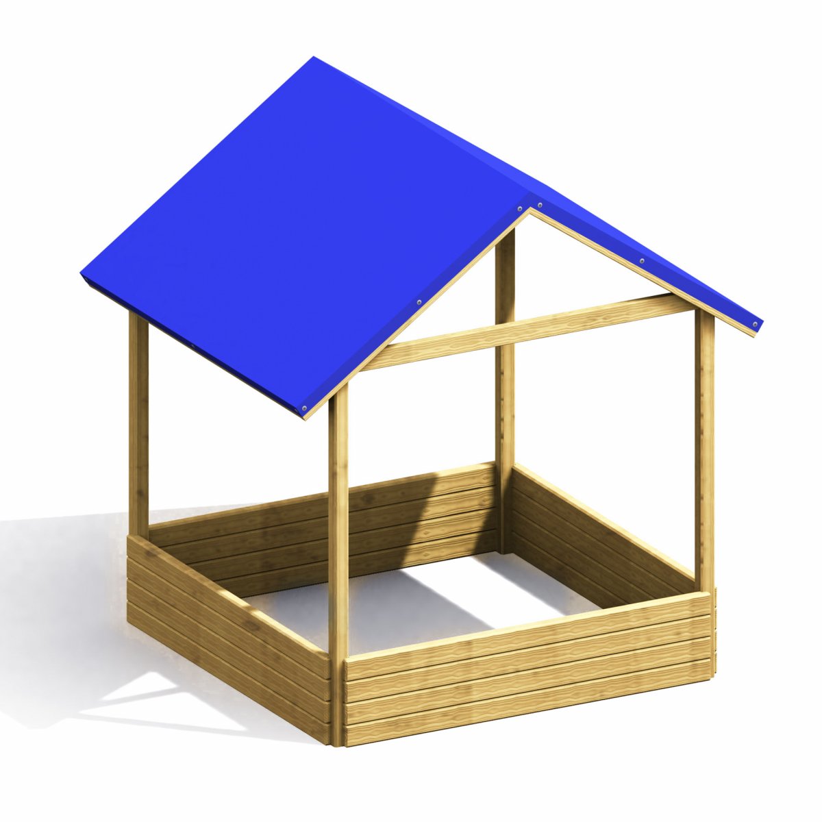 Der Sandkasten MORITZ aus FSC®-zertifiziertem Nadelholz bietet mit dem blauen Sonnendach Schutz vor Regen und zuviel Sonne. Für eine 2/3 Füllung werden ca. 0,27 cbm (405 kg) Sand benötigt.