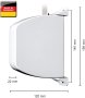 - Lochabstand zur Befestigung: 14,5 cm