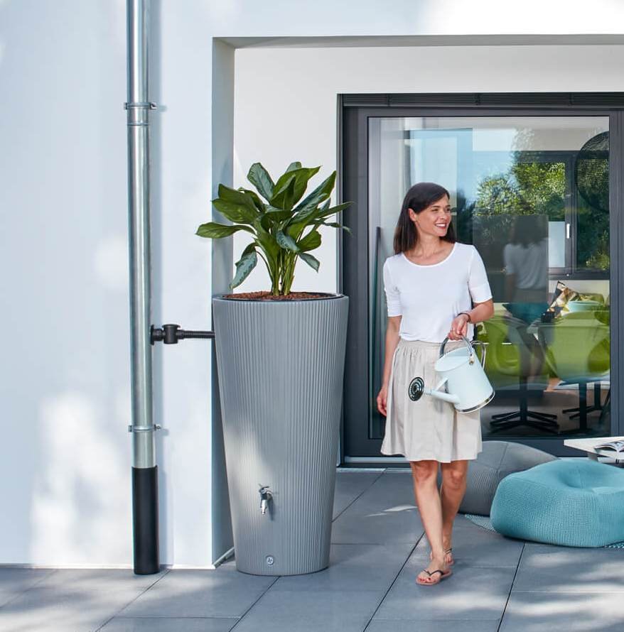 - Der designstarke Regenwasserbehälter mit einzigartiger Oberflächenstruktur