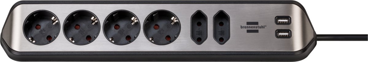 Die kompakte brennenstuhl®estilo Eck-Steckdosenleiste aus hochbruchfestem Kunststoff und hochwertiger Edelstahloberfläche bringt Ihnen Ordnung in Ihr Zuhause. Die universell einsetzbare Steckdosenleiste lässt sich als Küchensteckdosenleiste für Ihre Arbeitsplatte oder als Tischsteckdosenleiste für Ihren Arbeitsplatz durch Spezial-Klebepads leicht anbringen. Die Küchen- oder Tisch-Steckdosenleiste kann sowohl horizontal als auch vertikal angebracht werden. Die Steckdosenleiste verfügt über 4 Schutzkontakt-Steckplätze und 2 Euro-Steckplätze, somit können Sie mehrere Geräte gleichzeitig verwenden. Sie überzeugt außerdem durch folgende Eigenschaften: