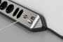 - Tischsteckdose 6-fach mit 2-USB Ladebuchsen (max. 3.1 A), 4 Schutzkontakt-Steckdosen in 45°-Anordnung und 2 Euro-Steckdosen in 90°-Anordnung