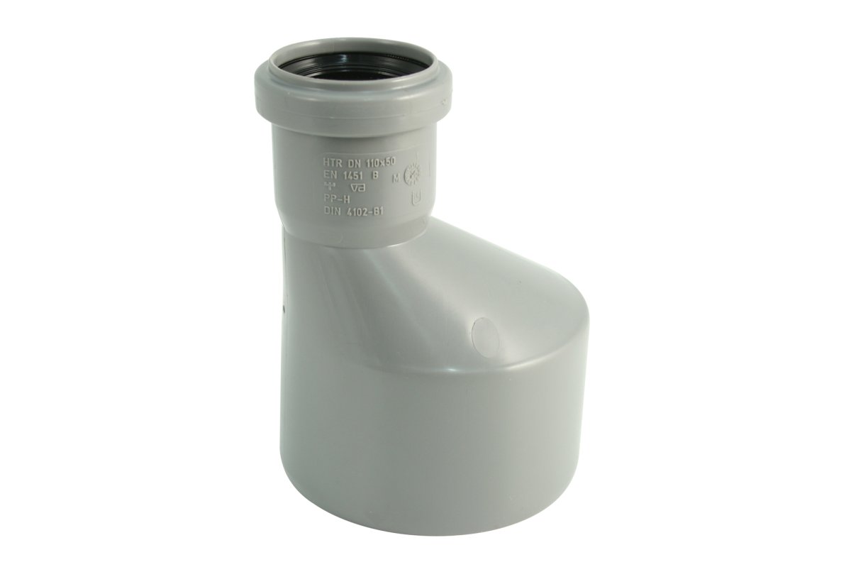 HTR Übergangsrohr exzentrisch, lang für Rohre und Formstücke für die Abwasserleitungen in Gebäuden nach DIN 1451-1, Die Muffen sind heißwasserbeständig bis 90°C, gem. DIN EN 476. Material: schwer entflammbares Polypropylen = PP nach DIN 4102/B.1