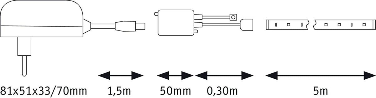 - Betriebsfertiges Set inklusive 230/24V Power Supply mit Zuleitung und Netzstecker