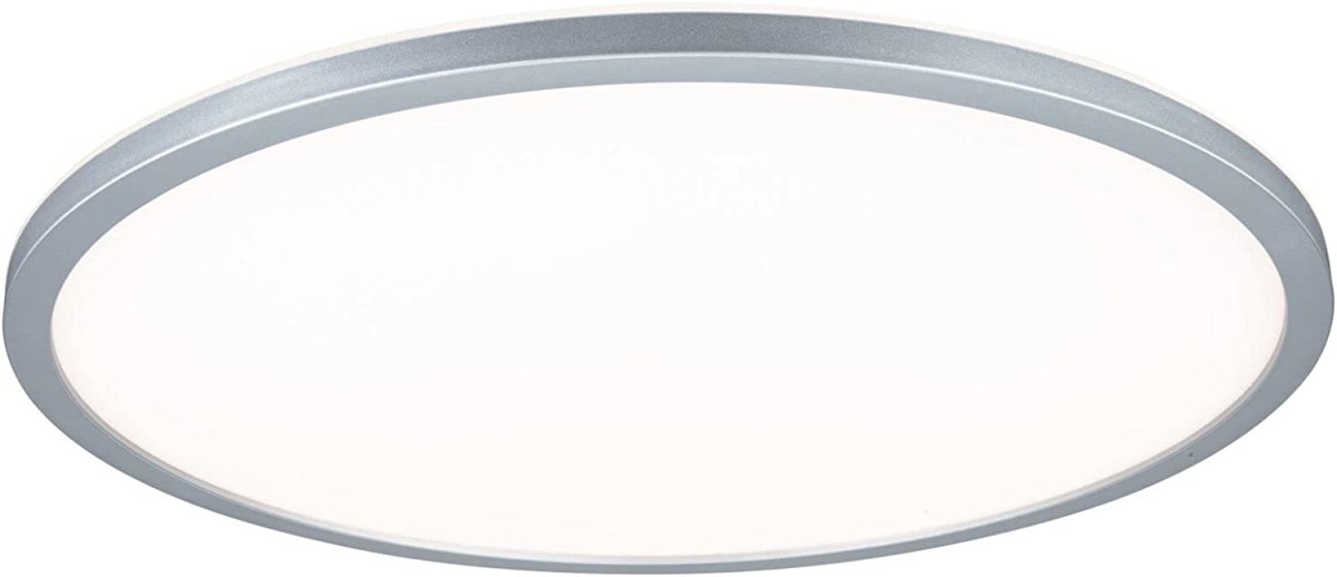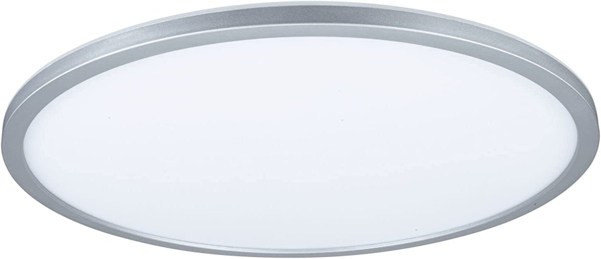 Mit einer Leistung von 22W eignet sich das runde LED Panel Atria Shine in Chrom matt und 420mm ideal für die Grundbeleuchtung von Wohn- und Schlafräumen oder Küchen. Das warmweiße Licht des Panels schafft eine gleichmäßige und flächige Raumausleuchtung. Mit der integrierten 3-Step-Dim Funktion kann es durch mehrmaliges Betätigen eines handelsüblichen Lichtschalters in drei Stufen gedimmt werden. Die zusätzliche Backlight Technik zaubert eine besondere Wohlfühlatmosphäre und verleiht dem Panel eine fast schwebend Leuchtoptik. Dank der Schnellklemme und des besonderen Drehverschlusses ist das Panel mit seiner ultraflachen Aufbauhöhe von 28 mm sehr montagefreundlich.