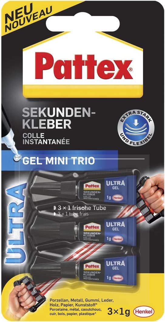 Sekundenschnelle Haftung mit dem neuen Pattex Ultra Gel Mini Trio Sekundenkleber für viele Materialien.