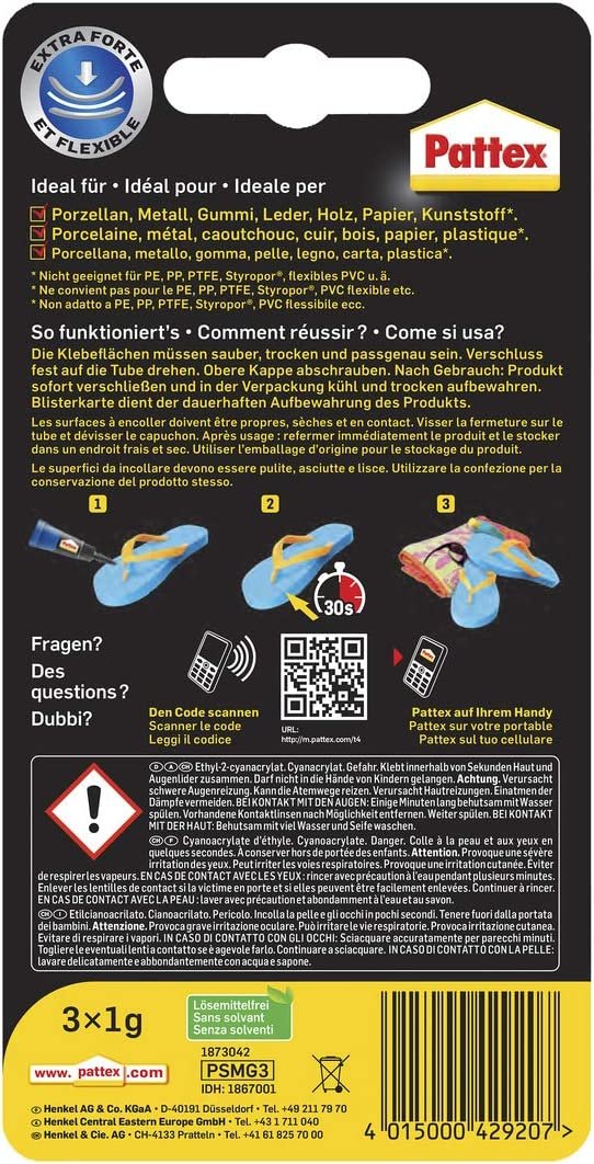Die bewährte extra starke und flexible Pattex Ultra Gel Rezeptur ist jetzt auch in praktischen 1g Tuben erhältlich. Durch seine einzigartige Gel Rezeptur eignet er sich insbesondere für poröse Materialien und senkrechte Flächen. In seiner optimalen Qualität für jede Anwendung ist er immer da, wo man ihn braucht.