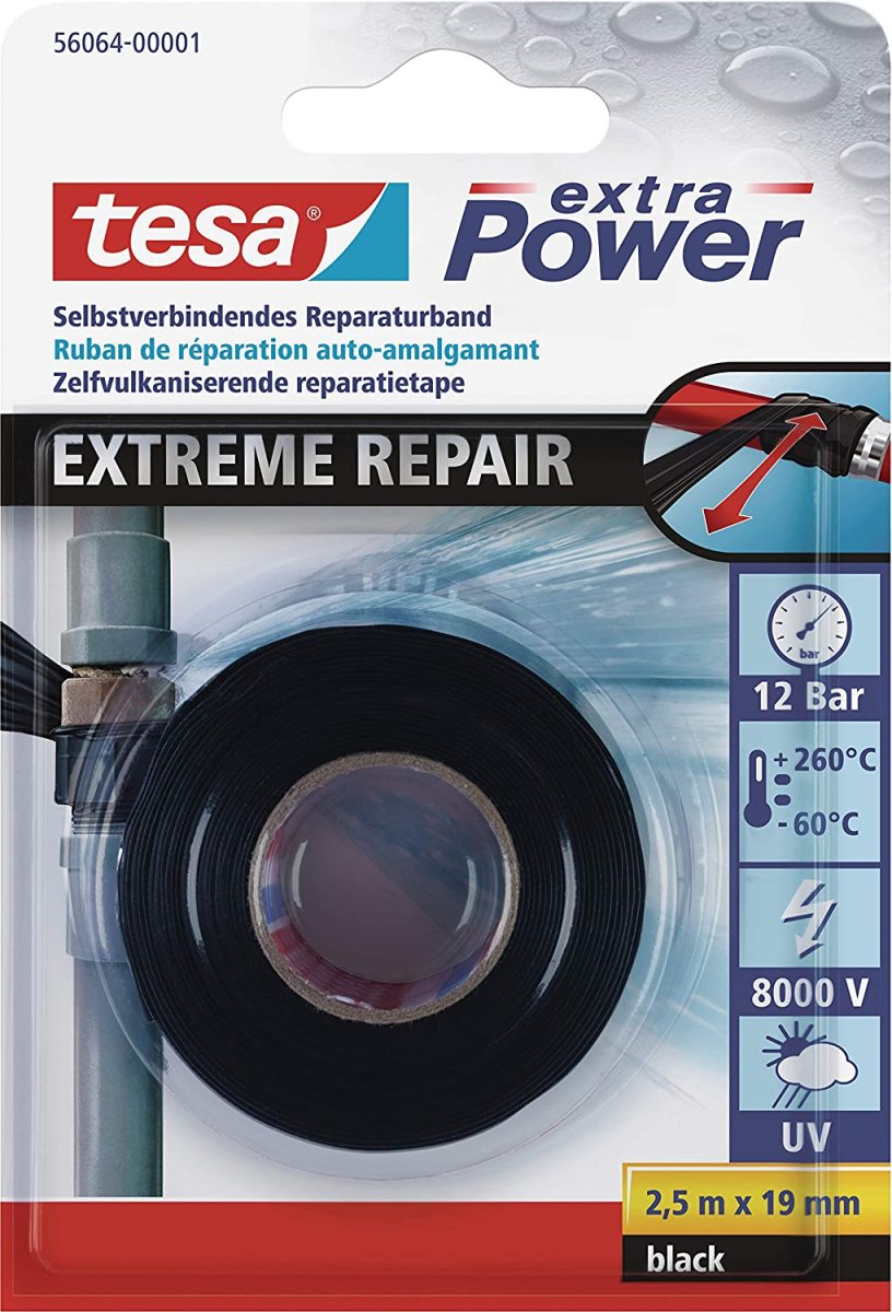 Es klebt ohne Klebmasse und kann sogar unter Wasser zum Abdichten von Rohren und Schläuchen, aber auch zur Isolation von elektrischen Kabeln verwendet werden. Indem das Silikon-Reparaturband mit festem Druck um sich selbst gewickelt wird, entsteht eine äußerst widerstandsfähige Verbindung, mit der Schäden zuverlässig repariert werden können.