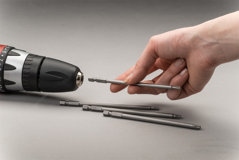 Extra lange 150 mm Bits zum Erreichen von tiefliegenden oder schwer zugänglichen Schrauben.