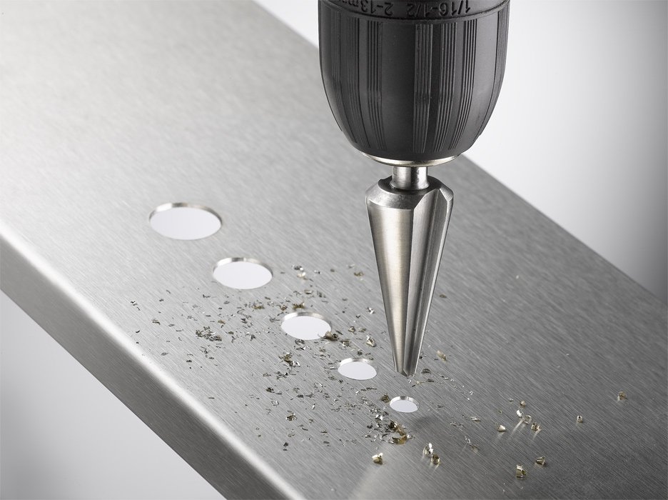 - zum stufenlosen Bohren von kleinen bis großen Durchmessern ohne Vorbohren in dünnste Bleche