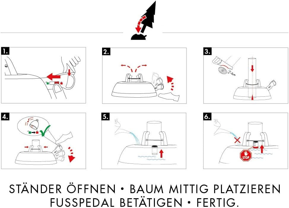 - Wassertank mit Wasser-Füllstandsanzeige: Damit ist die Bewässerung während der gesamten Standzeit des Christbaumes gesichert. Die Anzeige schwimmt auf, sobald der Christbaumständer mit Wasser gefüllt wird.