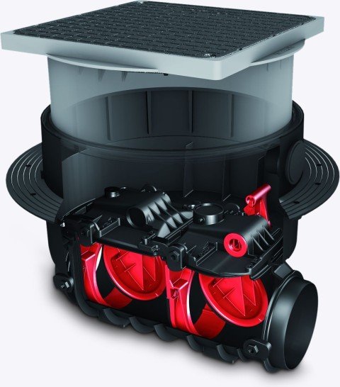 - Modulset-Version, ohne Zu-/Auslaufstutzen, Einbau in Bodenplatte