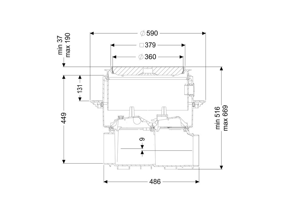 - Modulset-Version, ohne Zu-/Auslaufstutzen, Einbau in Bodenplatte