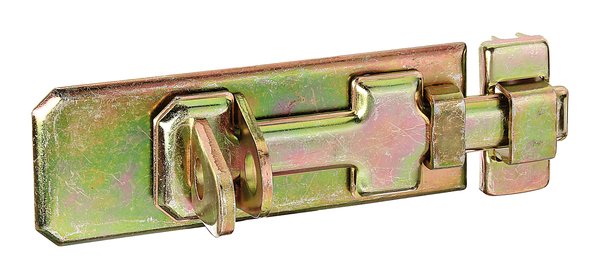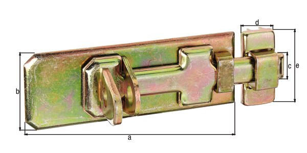 Shop » Detailansicht Sicherheits-Schlossriegel mit flachem Griff - gerade - galvanisch gelb verzinkt