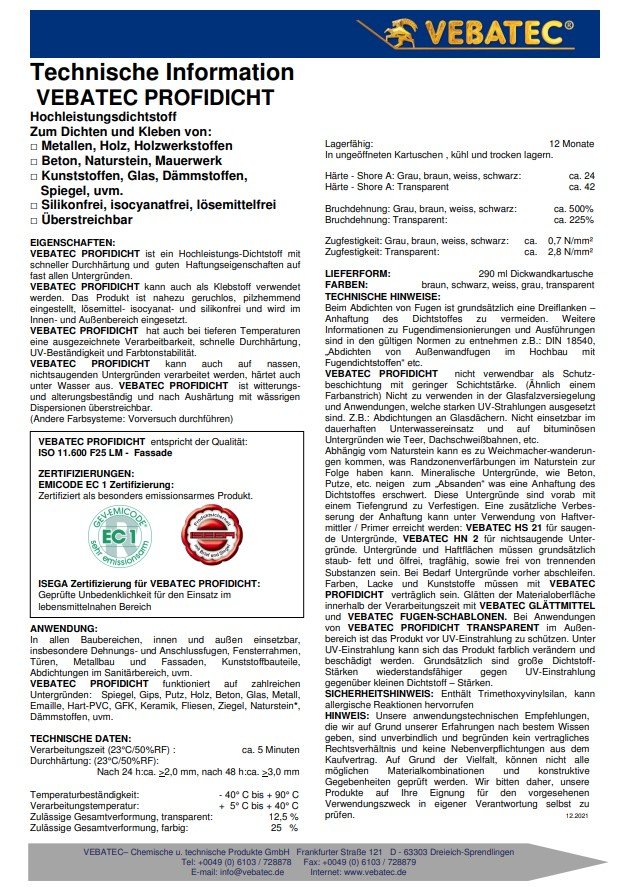 Shop » Detailansicht Vebatec Profidicht - Dichtmasse - verschiedene Ausführungen