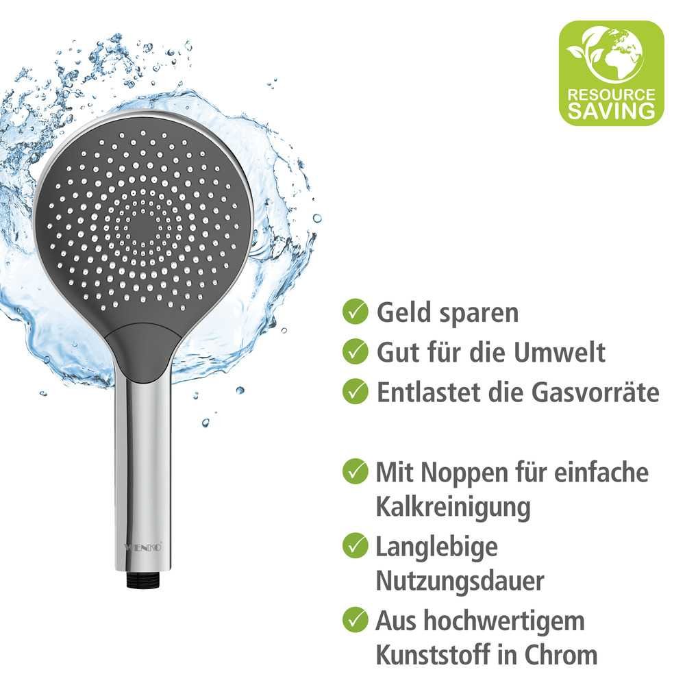 Auch bei Duschköpfen setzt WENKO auf Nachhaltigkeit! Mit den Watersaving Duschköpfen sparen Sie Wasser, Energie und Geld. Alle Modelle mit dem nachhaltigen Watersaving System sind so konzipiert, dass mit Hilfe eines Wasserspareinsatzes weniger als 8 Liter Wasser pro Minute verbraucht werden (bei 3 Bar Wasserdruck) ohne, dass es bewusst wahrgenommen wird. So werden 40% Wasser gespart bei vollem Komfort - denn ein konstanter Durchfluss mit sattem Wasserstrahl ist nach wie vor gewährleistet.