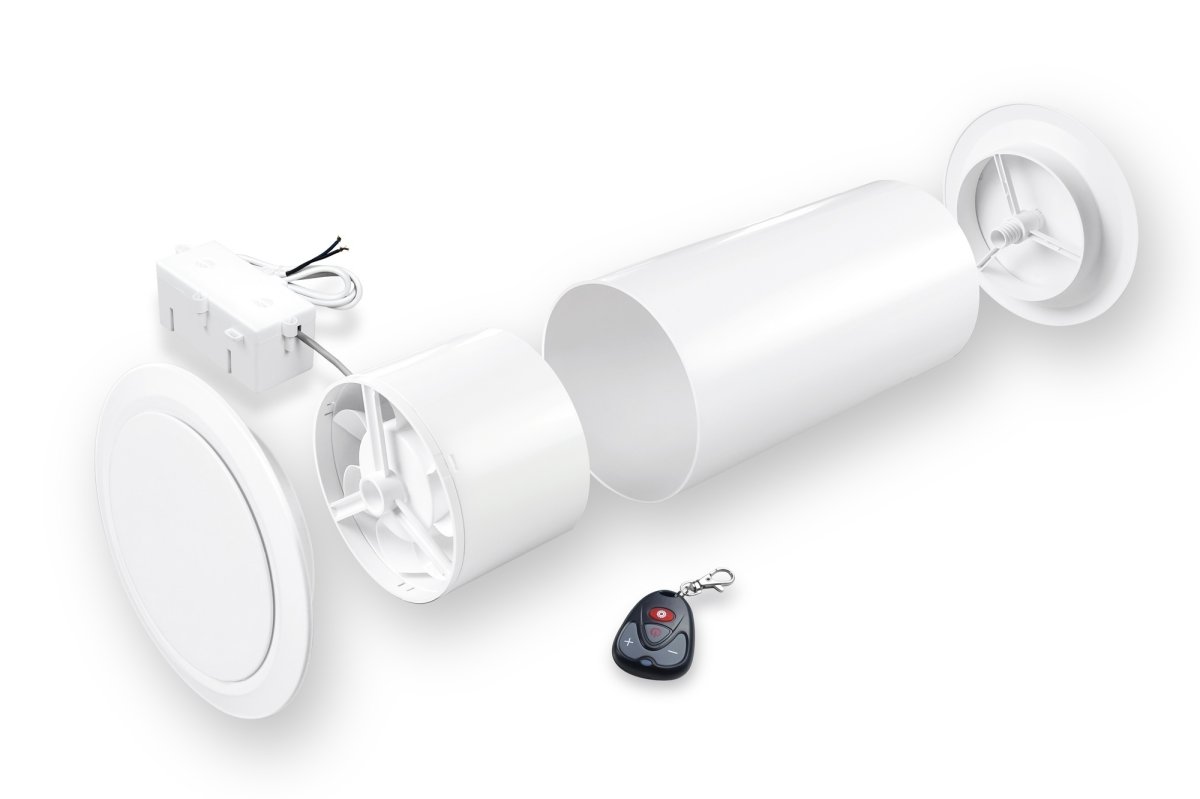 - 1 Controller-Box mit Funk-Modul inkl. 230 V Anschlussleitung und 2 m Zuleitung zum Ventilator
