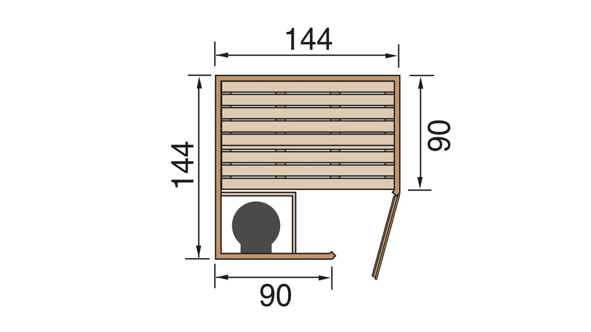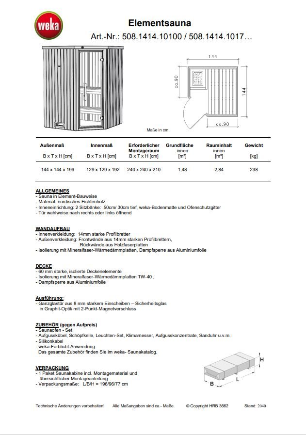 - Außenmaß: 144 x 144 x 199 cm (BxTxH)