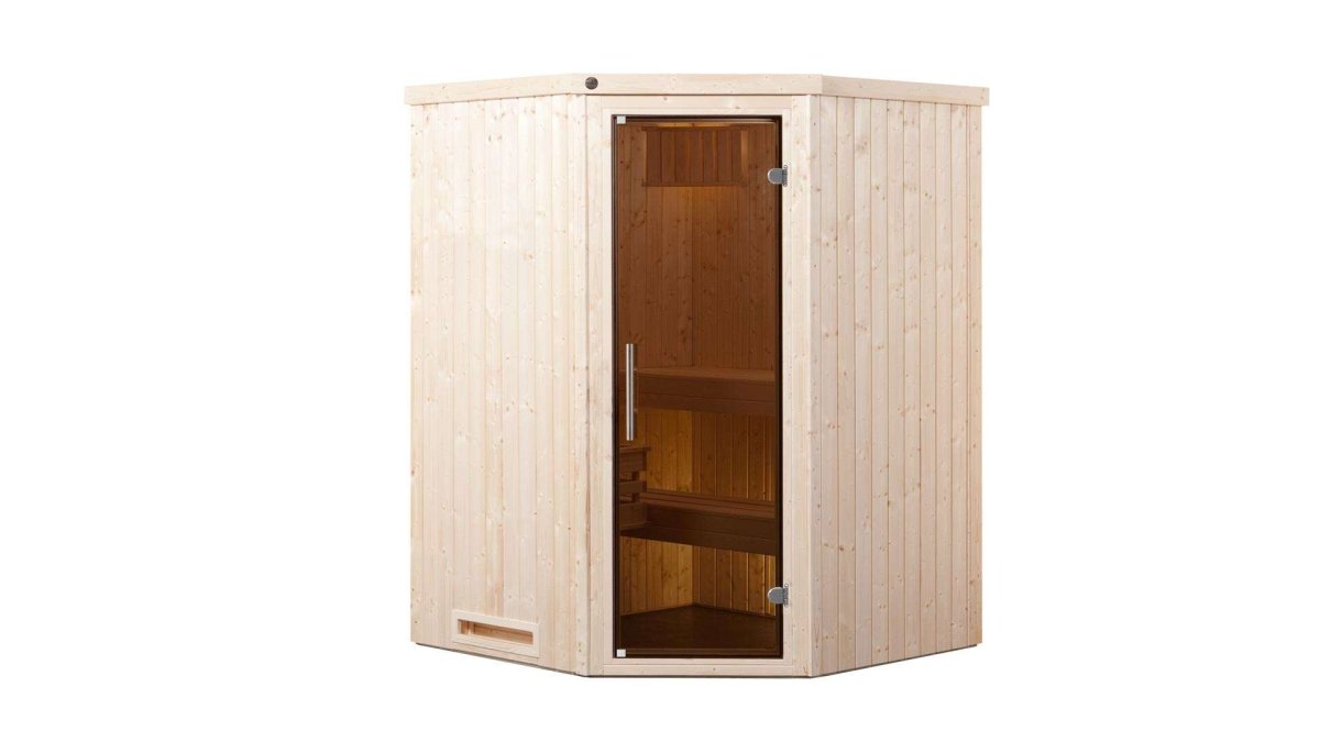 - 230-V-Sauna aus naturbelassenem Fichtenholz