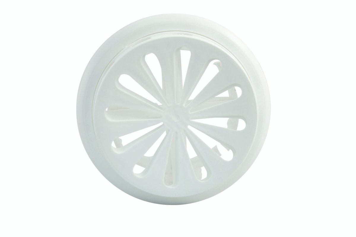 Verschließbares Lüftungsgitter aus Kunststoff, zum Einbau in Rohre Ø 100-150 mm, für innen.