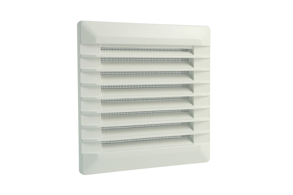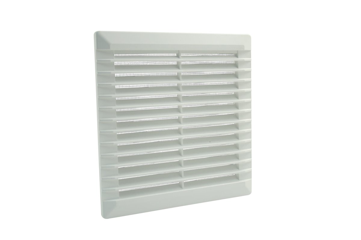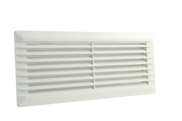 Lüftungsgitter aus hochwertigem Kunststoff für Hohlwände aus Holz, Gipskarton, Metall, für innen und außen, zum Aufschrauben, mit Fliegengaze aus Fiberglas.