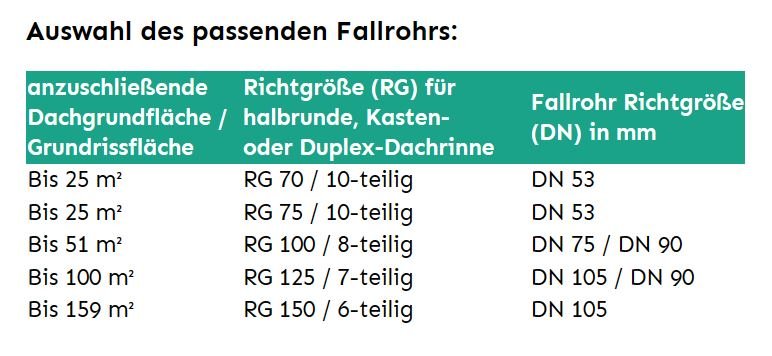 - Größe: DN 53 (passend für halbrunde Dachrinne RG 75, Kastendachrinne und Duplex-Dachrinne)